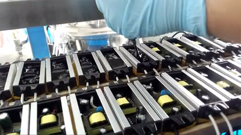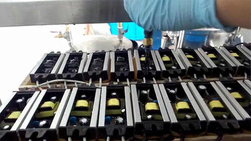 電子灌封膠有雙組份,也有單組份,本案例客戶深圳電子科技有限公司使用我司雙組份電子灌封膠進(jìn)行電源灌模密封。采用機器進(jìn)行真空環(huán)境下操作配比,將配比后的電子灌封膠經(jīng)過管道輸出就可以用于電源灌封使用。下面是客戶生產(chǎn)視頻拍攝由于手機拍攝像素問題導(dǎo)致不清晰,請諒解。